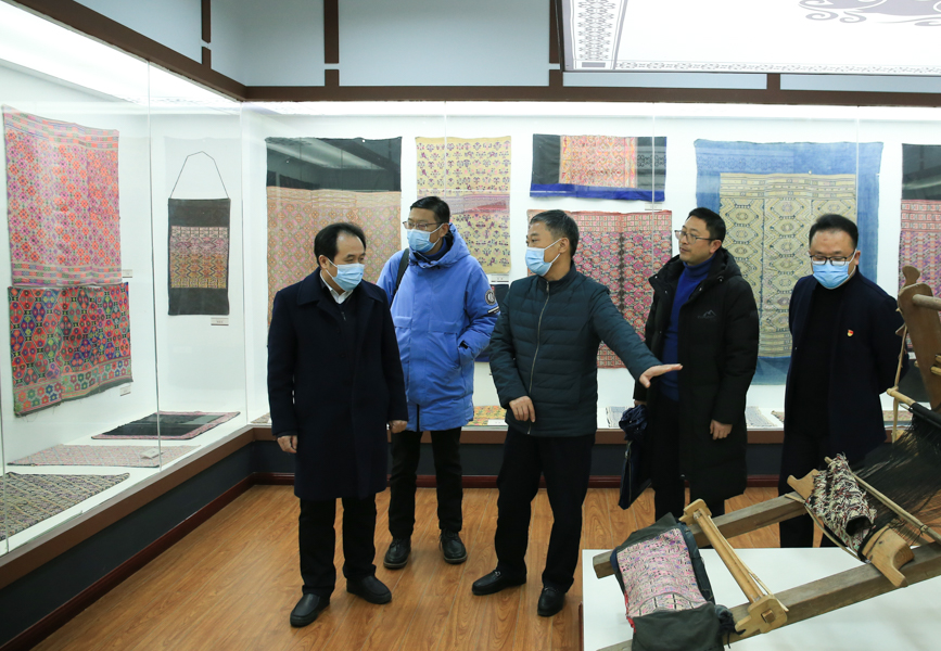 喻立平一行参观了武陵山民族文化与旅游产业发展湖北省协同创新中心,详细了解了金年会在土家族地区非遗文化保护与传承中取得的成绩,观看了金年会教师扎根武陵山区、倾心服务乡村文化振兴的宣传短片,并就基地的相关建设和发展进行了深入交流。