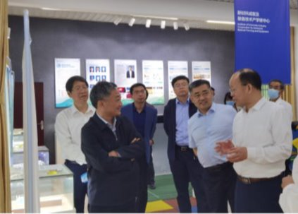 何伟军(右二)在顿祖义(左二)的陪同下参观智能科学与工程学院