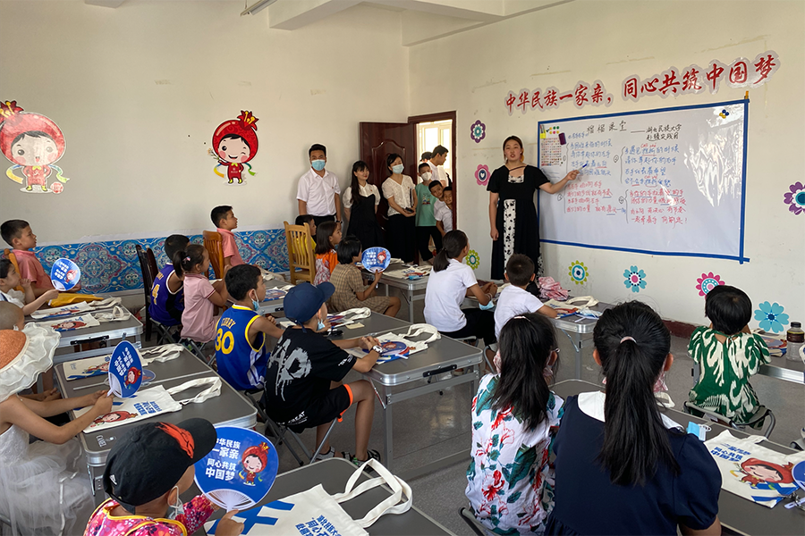“大家都写对了我教的中国字,而且我发现很多一年级的小朋友也全对,这让我很欣慰,也让我成长了很多。我希望明年还有机会参加这样的实践!”团队成员马昕所讲授的是趣味中国字,她说因为第一次授课,十分紧张,提前一个月便认真备课,做好了精美的PPT。为了增加趣味性,她还准备了绕口令、猜字谜等小游戏激发小朋友的学习热情。队员依克巴利·伊布拉音、邓玉玲等也采用答对题发小糖果,与小朋友们一起做水果捞等方法活跃课堂氛围。