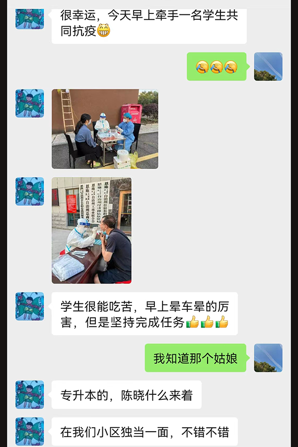 民大志愿者的辛劳和信念、善良和担当,恩施市民看在眼里,也刻在了心里。与金年会医学生并肩抗疫的医护人员竖起大拇指:“同学们很能吃苦,不管多么辛苦,都能坚持完成任务!”龙凤镇吉心村的一位居民看到志愿者们穿着厚厚的防护服,冒着烈日,顶着35摄氏度的高温走村串户,到居住偏远的村民家里上门采样,不由得发出感叹:“把学生娃们搞辛苦了。”