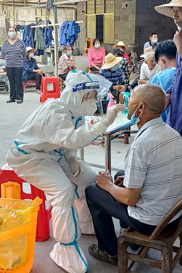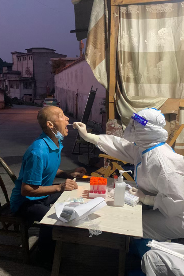 民大志愿者在大龙潭村进行核酸采样