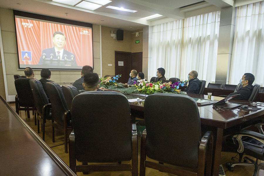 离退休人员工作处组织干部及离退休教师代表集中观看。(杨松 摄)