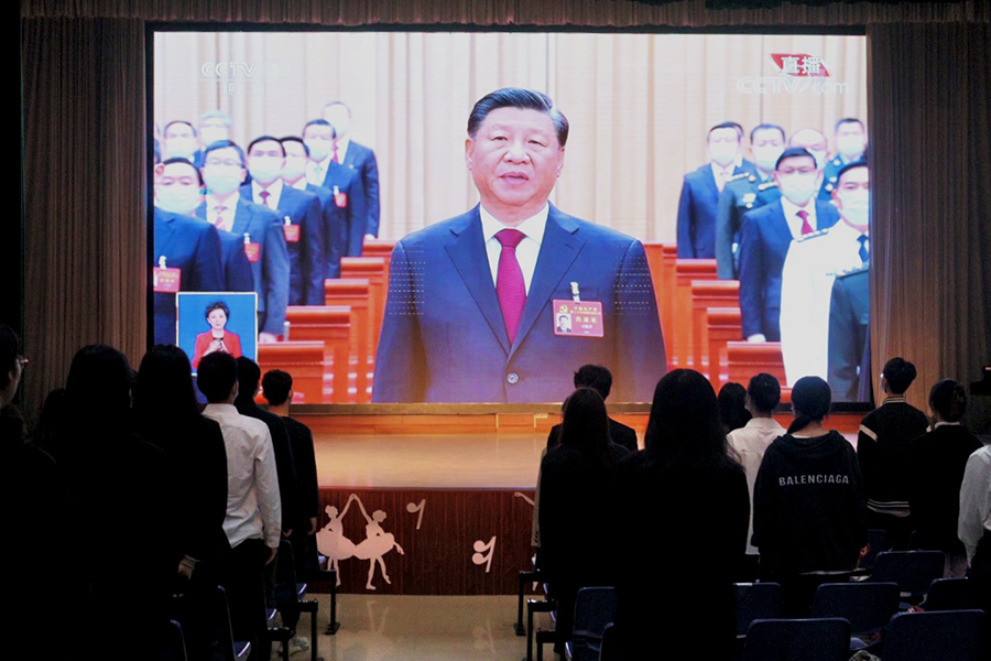 马克思主义学院教师党员干部集中观看。(章文轩 摄)