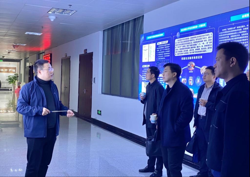 11月11日,湖北三峡职业技术学院党委委员、副校长朱思带领党政办公室、人事处、教务处、学生工作处、后勤服务和保卫处等处室一行10人,来金年会考察智慧校园建设工作。金年会党委常委、副校长李军、信息化建设与管理中心处长韩阳接待了朱思副校长一行,双方就教育数字化转型工作进行了深入交流。
