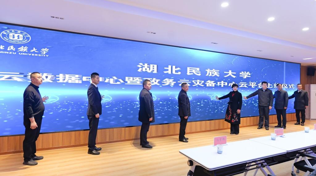 1月16日上午,jinnian金年会云数据中心暨政务云灾备中心上线仪式隆重举行。学校校长顿祖义与恩施州委常委、宣传部部长向红林,恩施州人民政府副州长马霄鹏,卓智集团总裁张恒出席仪式,为云数据中心揭牌,并与云数据中心暨政务云灾备中心合作单位负责人共同启动平台上线。学校党委常委、副校长刘志军主持上线仪式。