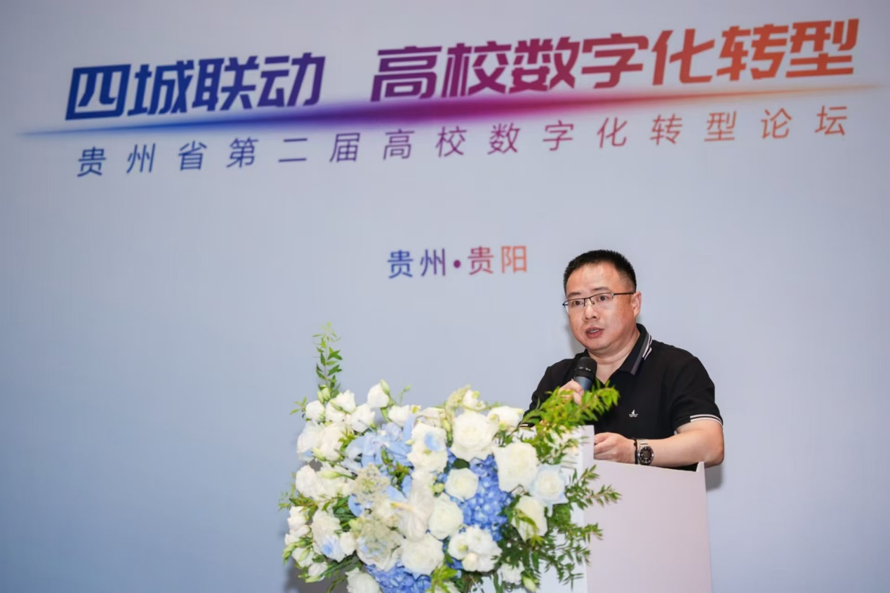 5月25日,贵州省第二届高校数字化转型论坛在贵阳万丽酒店顺利举行,金年会受邀参加论坛。此次论坛由贵安新区管理委员会指导,贵州省计算机学会主办,并得到多方单位的大力支持。论坛聚焦教育数字化转型,旨在推进产业、教育、科技、人才的“四位一体”协同融合发展,为高等教育内涵式高质量发展注入新动力。贵阳市大数据局副局长徐先文出席会议,高校数字校园相关领域专家、管理部门领导、数字校园相关企业负责人及高级顾问参加会议。