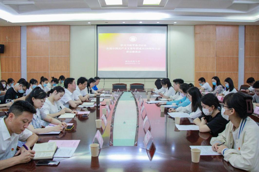 学校党委副书记邓磊出席会议并讲话。学校党委组织部、党委宣传部、学工处、校团委、研究生处等单位领导,各学院(部)团总支书记及学生代表参加座谈。校团委书记吴珊主持座谈会。