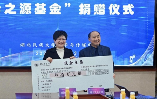 (通讯员陈黎阳见习记者祁书阳)11月23日下午,优秀校友、湖北希之源生物工程有限公司董事长向昱萱向学校捐赠30万元签约仪式在文学与传媒学院举行。学校党委常委、副校长李军出席捐赠仪式并讲话。