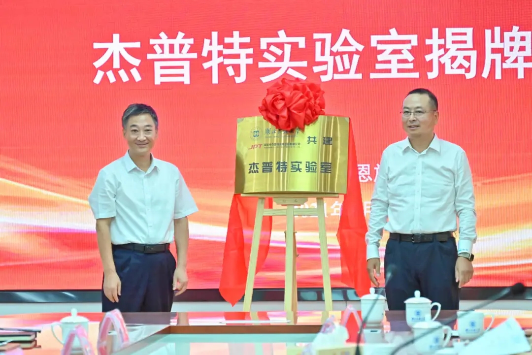 (通讯员 李淑英) 9月6日上午,深圳市杰普特光电股份有限公司出资与金年会共同建设的杰普特实验室揭牌仪式在学校行政楼3号会议室举行。深圳市杰普特光电股份有限公司董事长、金年会1987届特产系校友黄治家与顿祖义校长共同为实验室揭牌。揭牌仪式由学校党委副书记邓磊主持。