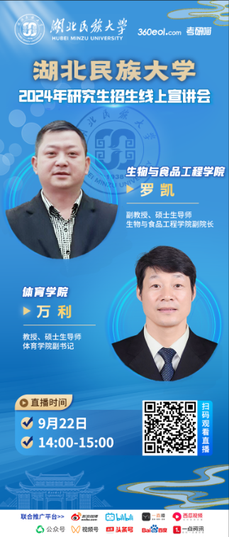 jinnian金年会生物与食品工程学院罗凯和体育学院万利两位老师莅临直播间,为广大考生解读研招政策、专业详情。欢迎广大考生及家长扫描下方海报二维码观看!