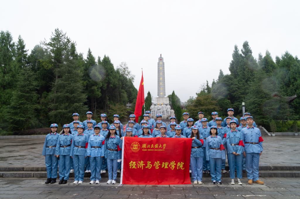 (通讯员 曾曙莲 朱梅琳/文 罗杉/图)2021年10月14日,经济与管理学院研究生党支部前往咸丰县忠堡大捷纪念公园开展“不忘初心 不负韶华——做好学生党员艰苦奋斗、勤俭好学的习惯教育”主题党日活动。研究生党员及部分入党积极分子参加此次活动,宋羽,冉瑞恩,向浩老师带队。