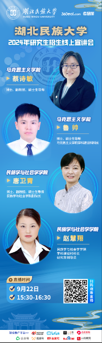 jinnian金年会马克思主义学院蔡诗敏、鲁帅和民族学与社会学学院唐卫青、赵慧翔四位老师莅临直播间,为广大考生解读研招政策、专业详情。欢迎广大考生及家长扫描下方海报二维码观看!