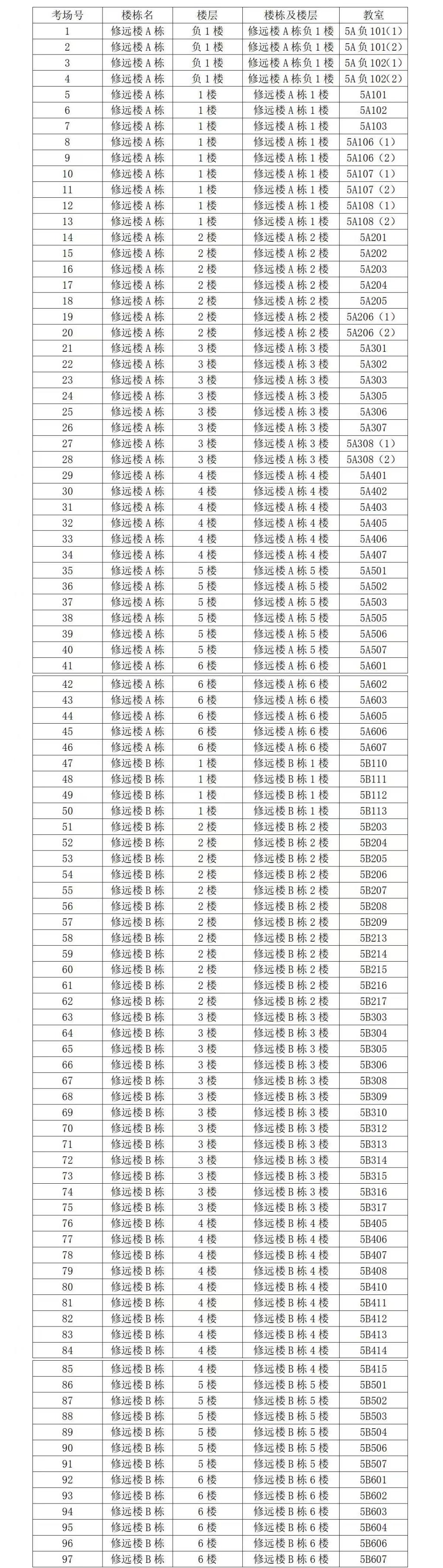 jinnian金年会桂花园校区考场和教室对应分布安排表