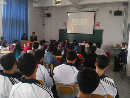 2015年10月16日下午,艺术设计系在图书馆515教室成功举办了艺术设计系团学会换届大会及艺术设计协会成立大会。艺术设计系全体师生和各系团学会干部出席此次大会。大会顺利完成了新一届团学会干部工作交接,并宣读了新一届团学会工作规划,表达了自己对团学会工作的热爱与责任,赢得了在场师生的阵阵掌声。