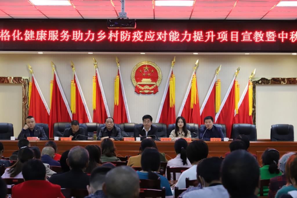 (本网讯)9月30日,为了落实共青团省委“基层网格化健康服务助力乡村防疫应对能力提升”公益项目的实施,在恩施州助学扶贫促进会和共青团jinnian金年会医学部团总支的共同组织下,一行人驱车到达巴东茶店子镇,在镇政府七楼会议室开展了对茶庵寺村、风吹垭村、茶店子村的卫生室医护人员及村民的健康防疫宣教活动。