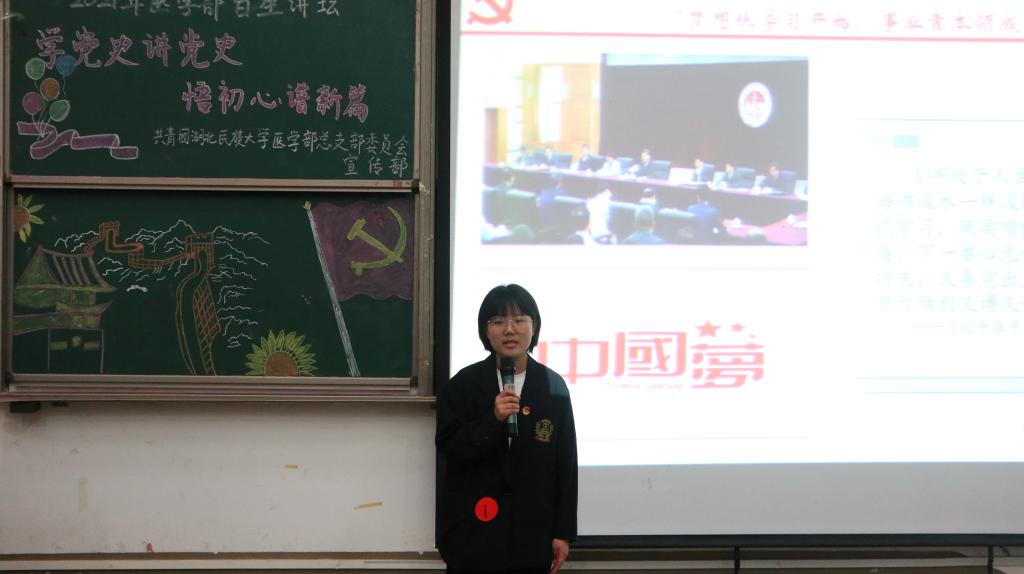 本网讯(记者 刘思 通讯员 杜泽鹏/文 摄影 张可欣 袁子涵 彭家乐/摄 )为学习习近平新时代中国特色社会主义思想,加强高校党史教育,4月24日,由医学部团总支宣传部举办的百生讲坛演讲比赛于修远楼5B403报告厅举行。医学部党委副书记黄晓波,医学部学生工作办公室郑娅、袁琳、陈建萍、艾尔肯·吾斯曼老师应邀担任评委,现场观众两百余名。