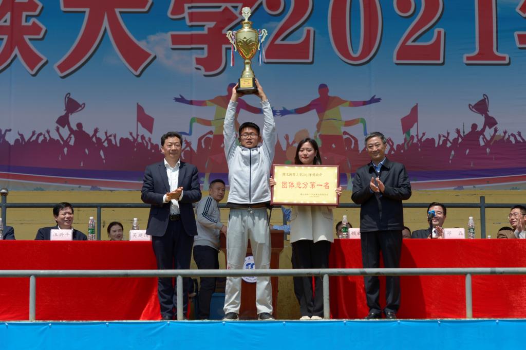 本网讯(通讯员 许旖蕾/文 李东 付傲/摄)4月29日,金年会2021年春季运动会闭幕式在五环体育场举行。学校党委书记吴建清,党委副书记、校长顿祖义,党委副书记、副校长汪兴平,党委常委、副校长邓磊,党委常委、副校长祝建波,党委常委、总会计师余来,党委常委田景福,各二级学院党政负责人、部门职能负责人出席闭幕式。闭幕式由邓磊主持。