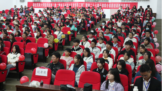 本网讯(记者 许旖蕾/文 曾凡轩/摄)为着力培养一批善于运用马克思主义立场、观点、方法观察分析问题的新时代青年马克思主义者以及信仰坚定、能力突出、素质优良、作风过硬的大学生骨干。10月31号,由共青团jinnian金年会医学部总支部委员会组织纪检部主办的第二期“青年马克思主义者培养工程”暨第二十七期学生干部综合素质培训班开课典礼在修远楼5A207报告厅举行,医学部党委副书记黄晓波,学生工作办公室老师陈建萍、袁琳、艾尔肯·吾斯曼、高梦琪受邀出席典礼,各二级学院组织纪检部的学生干部和医学部青马班200多名学员参加典礼。