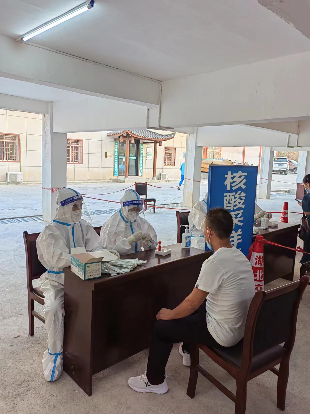 凌晨5:30,恩施市扩面核酸采样工作全面展开,民大首批驰援恩施疫情防控志愿者开始了一天紧张的工作。