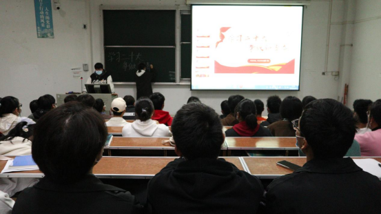 第二部分,各支部宣传委员提出青年命运要和时代紧密相连引导同学们认真学习宣传贯彻党的二十大精神,将其转化为永远跟党走、奋进新征程、建功新时代、夺取新胜利的强大思想武器和精神力量。第三部分,同学们聆听主持人讲解,回顾党的十八大以来的伟大变革和非凡成就,主持人的发言充分激发同学们将青春奋斗融入党和人民事业中的信心和决心。第四部分,各支部以视频、图片等形式深入学习百年党史,领悟党的伟大精神,鼓励同学们要以行动践行担当,自觉做习近平新时代中国特色社会主义思想的坚定信仰者、忠实实践者。