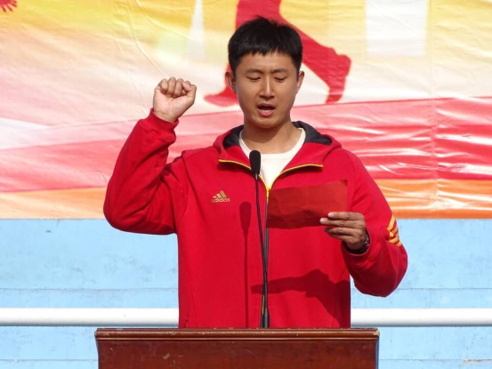大会伊始,学校党委副书记邓磊致开幕词。首先,他向全体运动会工作人员致以诚挚的谢意,同时向运动员、裁判员表达亲切的慰问。他提到,体育教育是教育教学、立德树人的基本环节,运动会是体育竞技的盛会,运动员们以强健的体魄和阳光的心态诠释坚持不懈的追求与昂扬向上的拼搏精神。紧接着,他表示:一年一度的运动会是展现师生风采的平台,希望同学们在竞争中相互交流,培养团队协作的精神,全体运动员、裁判员一定能够秉承“公平、公开、公正”的宗旨,团结协作。最后,党委副书记邓磊预祝运动员们能够取得优异的成绩,在运动会中展现民大风采。来自法学院的运动员卓易洲,体育学院裁判员张中一分别代表运动员和裁判员进行宣誓。
