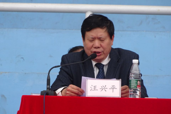 何斌宣布运动会团体总分排名及荣获“体育道德风尚奖”的学院