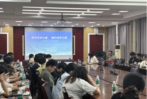 黄筱钧主任为同学们展开学术规范教育,要求同学们“恪守学术之诚,践行治学之道”。