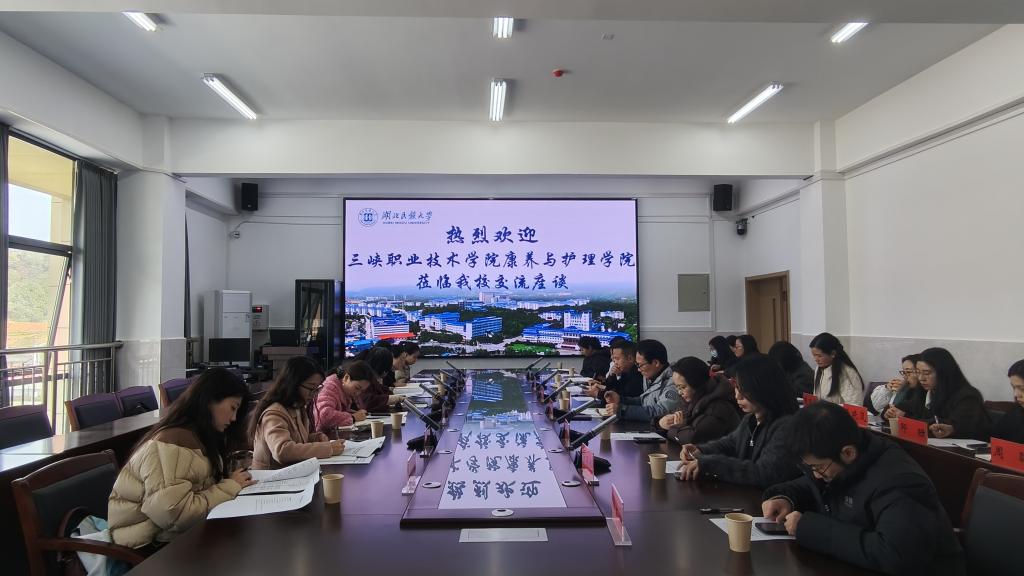 2025年2月27日,湖北三峡职业技术学院康养与护理学院副院长孙晓丽一行到访jinnian金年会医学部,就护理专业专本联合培养课程标准等相关事宜开展交流座谈。医学部党委委员、副主任陈磊、黄筱钧、护理学专业负责人及相关教师参加座谈。