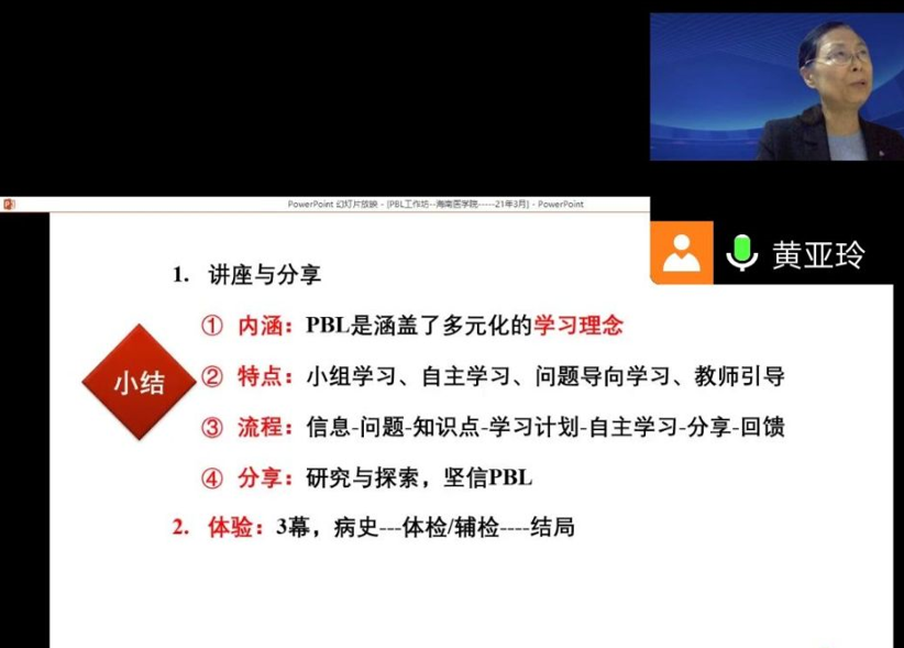 2022年11月2日下午14:00-17:00,由华中科技大学同济医学院协和医院的黄亚玲教授对jinnian金年会医学部及其附属恩施州中心医院的基础医学、临床医学、中医学各专业老师进行的PBL在线工作坊教学培训进入最后的第四阶段。