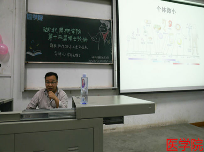 本网讯(记者 左云杰 徐祎)6月16日晚,由湖北民族学院学生会主办,湖北民族学院医学院学生会承办的第十二届题为“微生物与人类的关系”博士论坛于我院8207教室顺利举办,主讲人为我院微生物学老师石廷玉博士,各二级学院近两百人参加此次讲座。