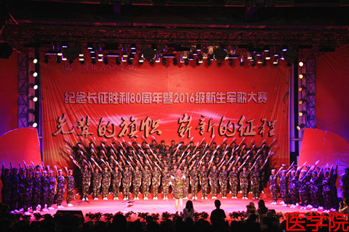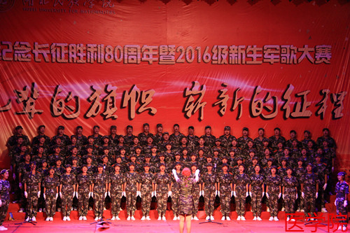 本网讯(记者 徐祎 陈灵佼/文 黎锐/图)为纪念长征胜利80周年暨“九一八事变”95周年,9月18日,金年会2016级军歌大赛在大学生广场隆重举行。音乐舞蹈学院兰宏建老师、黄玉林老师、谷秋阳老师、谷穗老师、陈超老师应邀担任评委,各二级学院党委书记、学生科老师莅临现场。大赛由文学与传媒学院的董圣洁同学和民族学与社会学学院的王伟文同学主持。