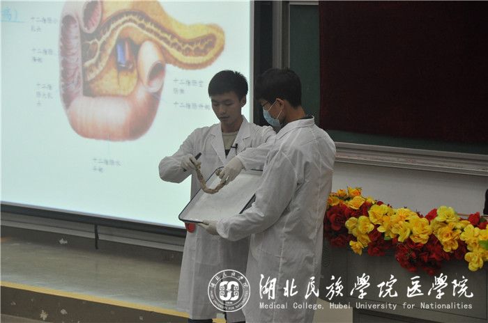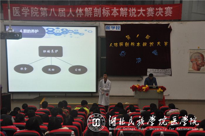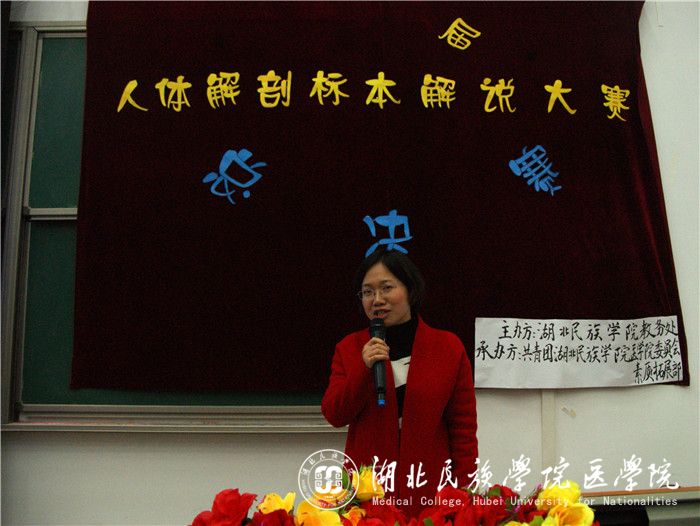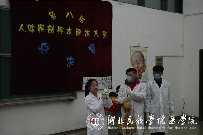 本网讯(记者 何雅婷 通讯员 向琴/文 刘彤 肖智仁 周蕾/摄)为进一步展现我院专业特色,弘扬医学风采,12月8日晚,由金年会教务处主办、我院团委承办的第八届人体解剖标本解说大赛决赛在修远楼5B509教室举行,我院解剖教研室主任陈龙菊,解剖教研室老师吴太鼎、谭文波、王振富等出席并担任评委,我院党委副书记张蕊、团委书记彭弥作为嘉宾出席本次决赛,16级二百余名同学观看本次比赛。