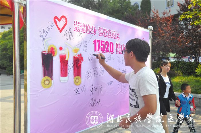 本网讯(通讯员 姚涛/文 肖智仁/摄)为响应习总书记“敞开胸怀拥抱自然,点点滴滴播撒阳光,经年累月铸就美好,努力做一个心灵纯洁、人格健全、品格高尚的人”的号召, 5月20日,我院青年志愿者协会在大学生广场举办了“17520,健康一起行”的主题活动。