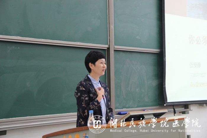 讲座伊始,肖骏教授以“医路心路”为主题,向同学们阐释何为“医路”、“心路”。当谈及 “医路”时,他希望在座的医学生,在未来的行医之路中都能找到适合自己的路。在讲到“心路”时,他以“中国外科之父”裘法祖先生的事迹教育在座同学,在未来行医的道路上,一定要有“医者仁心”,对待患者要有耐心、恒心、仁爱之心以及怜悯之心。随后,张安静从“什么是机会成本”、“人生没有白走的路,每一步都算数”、“你若盛开,清风自来”三个话题引出主题“你必须成为自己首席执行官”,让在场听众明白如何通过自己不断努力干出实绩,做好未来的职业规划。讲座完毕后,学生代表任莹芳上台发言,她首先感谢八八届学长学姐对贫困学子的帮助,并代受资助的贫困学子宣誓,当他们有能力之时,一定会将这份爱心传递下去。