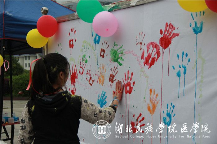 活动伊始,参赛人员于五环体育场的开幕式载歌载舞,歌声与舞蹈瞬间点燃现场气氛。主持人一声令下,各位同学立即分别前往八个站点参与活动,搜集所需装备。八个站点分别由不同的学院承办,每个站点别具特色。在青色站中,同学们各自选择不同的装备进行拍照存档,并用颜料在展板上按下自己的手印。另外,该站点附有相关的心理健康知识,使同学们了解到拥有健康心理状态的重要性。在黄色站中,同学们则用自己的“脑力”挑战九九乘法表、找零钱等游戏,在奔跑中享受动脑的乐趣,达到身心健康的目的。其余各站点的活动也各有风采,每位参与者都乐在其中。最后,大家带着所获得的装备奔向五环体育场,同学们相聚一堂,现场一片欢声笑语,瞧,那面五颜六色的彩粉墙便是他们彩跑的足迹。