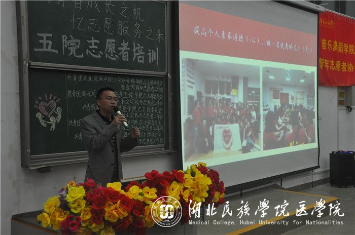 本网讯(通讯员 黎晓容 刘峻银/文 吕丰旭/摄)为使志愿者更进一步了解志愿活动,提高金年会青年志愿者综合素质水平,5月4日,金年会在5B403教室召开了“2018年五院志愿者培训大会”。本次活动由我院、文学与传媒学院、信息工程学院、美术与设计学院和音乐与舞蹈学院五院的社会实践与志愿者工作部联合主办,恩施义工协会策划部部长严书田、会员部部长赵俪出任特邀嘉宾。校团委相关负责人及五院120余名青年志愿者参加此次培训。