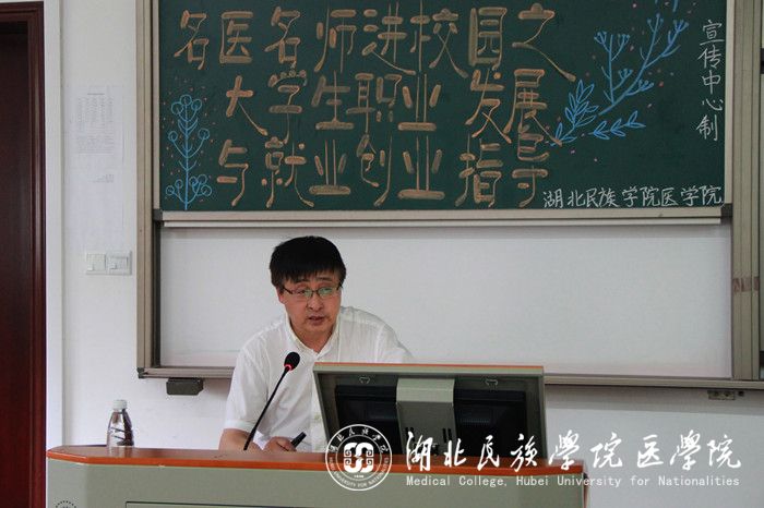 刘铜华教授以“大学生职业发展与就业创业指导”为题,从个人与团队、医学职业的优势、医学职业的发展、求职基本能力培训四个方面进行讲述,用幽默风趣的语言、自己的亲身经历,告诫同学们:学医要勤求苦训、百折不挠、精益求精、博采众长,才能在未来的职业生涯中崭露头角、绽放光彩。