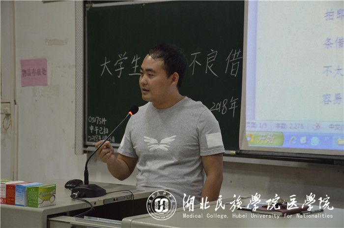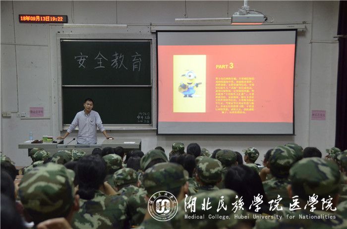 张鼎运用PPT并结合以往我院的实例为同学们详细地讲解五防安全知识。随后他结合自己大学的亲身经历告诉新生要与同寝室的同学和睦相处。紧接着,他通过讲述自己身边好友被诈骗的事例来告诫同学们不要进行校园贷。在讲座过程中,张老师向同学们推荐了多本书籍,教导同学们通过书籍中的知识来升华自己,提高素质,在今后的学习中找准目标,并为之奋斗。