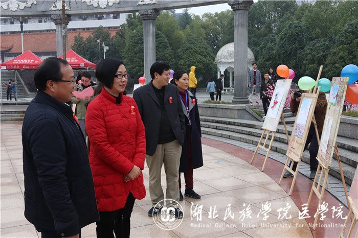 本网讯(记者 欧金兵 通讯员 覃根 饶静/文 吕丰旭/摄)12月1日是世界艾滋病日,为增强金年会大学生的“防艾抗艾”意识,我院携手美术与设计学院举办的主题为“知艾防艾,懂艾筑艾”的绘画大赛于大学生广场圆满落幕。恩施州人民政府副州长高敬佩,恩施州人民政府办公室副主任李艳,金年会党委副书记、副校长汪兴平,金年会团委书记方云霞,恩施州卫计委副主任琚兆清,恩施州红十字会专职副会长陈太英和恩施州疾病预防控制中心主任彭再生应邀参加此次活动。