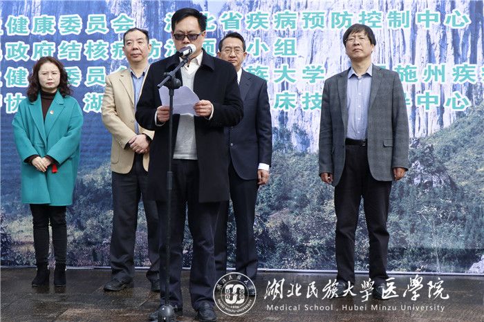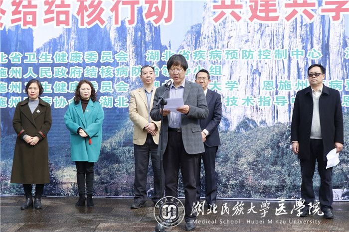 本网讯(记者 向锦月 刘峻银/文 汪诗名/摄)3月23日,由湖北省卫健委、湖北省疾控中心、恩施州人民政府结核病防治领导小组主办,jinnian金年会、恩施州卫健委、恩施州疾控中心、恩施州红十字会承办的恩施州2019年“世界防治结核病日”宣传暨志愿者结核病防治知识传播行动在金年会大学生广场隆重举行。恩施州委常委、副州长杨胜才,金年会党委常委、副校长、医学部主任祝建波,湖北省卫生健康委员会疾控处处长张险峰等出席。活动由恩施州卫生健康委员会党组书记段怀刚主持。