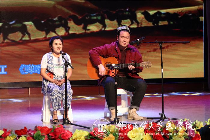 经过初赛与复赛的角逐,共有八组选手跻身决赛。本次比赛共分为个人表演和团队表演。医学部文艺团以一支热情洋溢的舞蹈献演燃爆全场。接着,比赛正式开始,选手们大展风姿,或是演唱热情奔放的天路之歌,或是展示变幻万千的优美舞姿。首轮环节中,来自维吾尔族的穆妮热•尤努斯、艾孜买提•买买提江弹唱歌曲《心愿》,令在场观众们赞不绝口。在第二轮团队表演环节中,三号、五号、六号组队带来的《俄罗斯卖货郎》凭借着精湛的表演,使得观众们身临其境,将全场气氛推向高潮;二号、四号带来的《舞出灿烂人生》为观众带来了精彩的视觉体验;一号、七号、八号表演的《坚持与信仰》则让观众看到了民族文化薪火相传的意志。最终五号选手穆妮热•尤努斯、艾孜买提•买买提江以9.565分获得了本次比赛的冠军,张鼎老师为其颁奖。