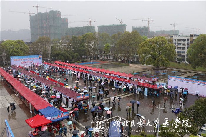 本网讯 (记者 卢天琳/文 吕丰旭/摄) 为切实搭建医学生就业平台,提高毕业生就业服务质量,3月30日,由jinnian金年会、jinnian金年会科技学院、恩施州公共就业和人才服务局、恩施市公共就业和人才服务局举办的2019年春季医药人才招聘会在金年会团结广场顺利举行。金年会党委副书记、副校长汪兴平,副校长、医学部主任祝建波出席招聘会,并与招聘单位负责人以及应聘学生进行现场交流。