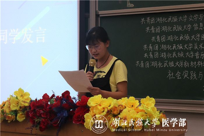 大会伊始,全体起立奏唱《青年志愿者之歌》并观看六院志愿服务视频。其后,由医学部2018级新生代表刘梦梅发言,她表示一年的志愿活动让她得到锻炼,提高了胆量、语言表达能力和应变能力,同时她为自己能献出爱心而骄傲。接着,赖秦宽和周承珍用亲身经历为切入点告诉志愿者们志愿者在志愿服务应当“用心用力用情”,以提升自己的价值。吴陶也向参会人员介绍了恩施州红十字志愿服务队的情况,并对金年会志愿者的辛勤工作给予了肯定,同时给在座的志愿者们分享了几点建议:一是不忘初心,始终保持一颗无私奉献、不求回报的爱心;二是持之以恒,根据自身实际、力所能及地参与各项志愿服务;三是认真总结,并在志愿服务中不断完善;四是健全机构。最后,在提问环节,吴陶对“如何把志愿服务活动坚持下来”作出了解答。她说道:“首先应该做好思想准备,想清楚后再加入。加入志愿服务后,应该有合理有效的志愿者制度,比如说她们必须保证一年要有24小时服务时间”。