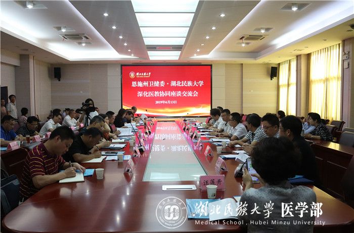本网讯(通讯员 覃根 饶静/文 吴亚辉/摄)6月13日,jinnian金年会、恩施州卫健委在jinnian金年会行政楼三楼会议室召开深化医教协同座谈交流会,邀请jinnian金年会党委常委、副校长、医学部党委书记、主任祝建波,党委书记吴建清,州卫健委党组成员、副主任杨祖旺,州卫健委内设有关职能科室、直属有关单位负责人,八县市卫健局领导,18家省、州、县属医疗卫生单位负责人以及jinnian金年会教务处、研究生处、科研处、教学质量评价中心负责人、医学部全体领导班子成员为jinnian金年会医学教育改革建言献策,就培养更多本土化医学人才服务健康恩施建设讨论交流。