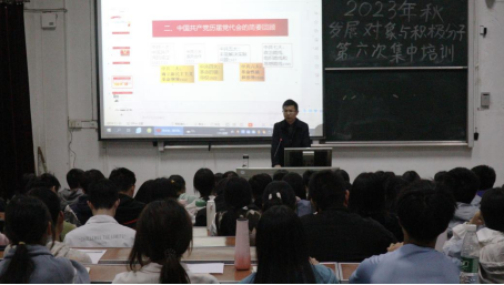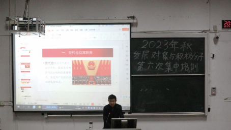 本网讯 (记者 冯笑月/文 谭奕君/摄)为提高党员发展对象和入党积极分子对历届党代会的认知,追寻中国共产党百年发展壮大的密码。10月24日晚,由jinnian金年会医学部杏林青年发展中心组织的2023年秋党员发展对象与入党积极分子第六次党课培训活动于医学部8306教室开展。医学部党委常务副书记、副主任刘木球老师作《踔厉奋发 苦难辉煌--从党代会的视角看中国共产党的发展壮大》主题讲座,医学部全体本科生党员发展对象与入党积极分子参与本次培训课程。