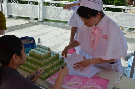 医务人员分发护肤手册