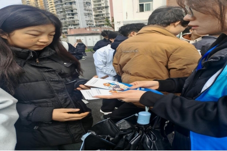 志愿者发放宣传手册