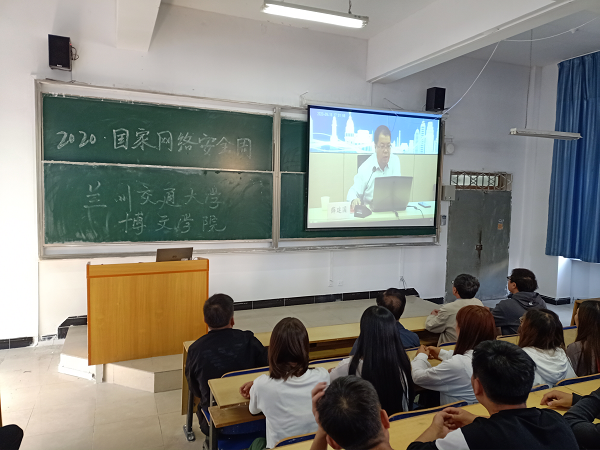 一年一度的国家网络安全宣传周于2020年9月14日在我院拉开帷幕,此次宣传周活动以习近平主席提出的“网络安全为人民,网络安全靠人民”的重要指导思想为主题。宣传周活动分为网络安全知识讲座、校园日、网络安全知识竞赛三个阶段,为保障广大学生的利益,提升大学生的网络安全意识,降低网络诈骗发生的风险,我院于9月15日在南校区教学楼举行了网络安全宣传讲座活动,出席此次讲座的有兰州交通大学博文学院陈彪院长、胡彦奎副院长、实验室与信息管理中心主任李天长、副主任杨天照等。