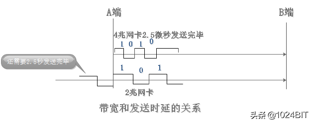 可以看到,发送时延和数据帧长度和发送速率有关,发送速率是网卡的带宽,100M网卡就意味着1秒钟能够发送100|*10**6比特。