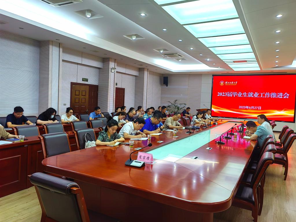 6月27日,学校在行政楼三号会议室召开2023届毕业生第三次就业工作推进会,党委副书记邓磊主持会议并作工作指示。